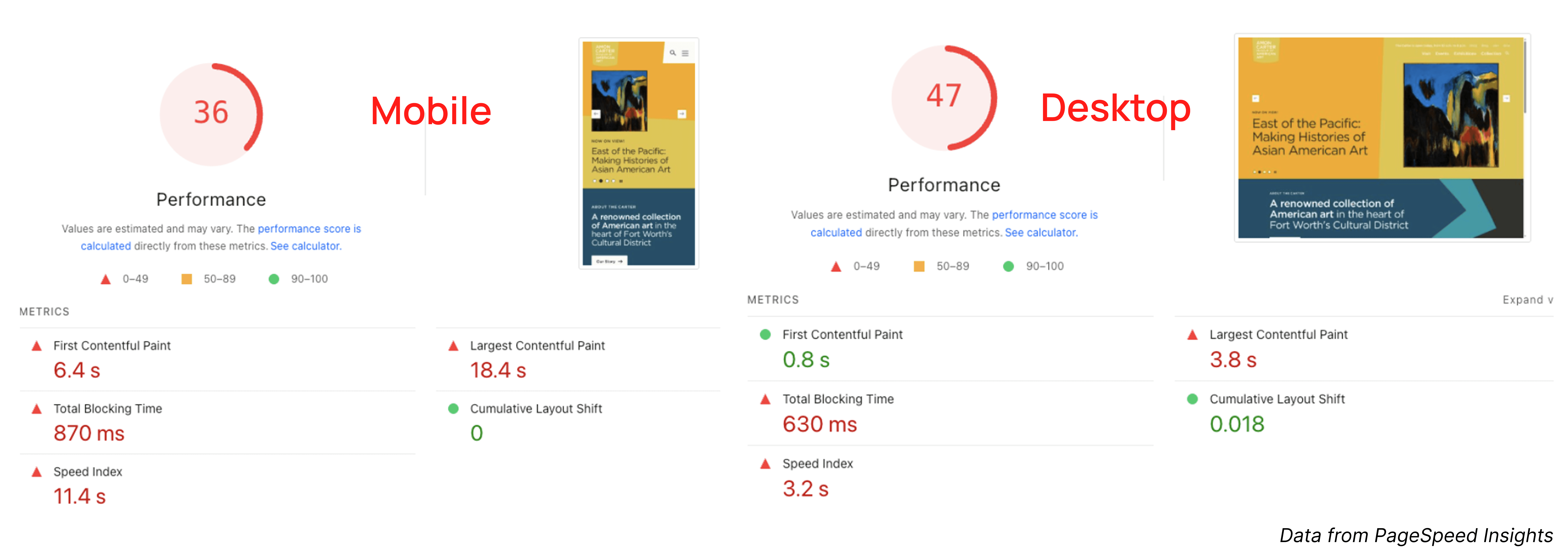 Slow performance discourages deeper exploration, reduces session duration, and limits how effectively users engage with important content such as exhibitions, education pages, and event listings.