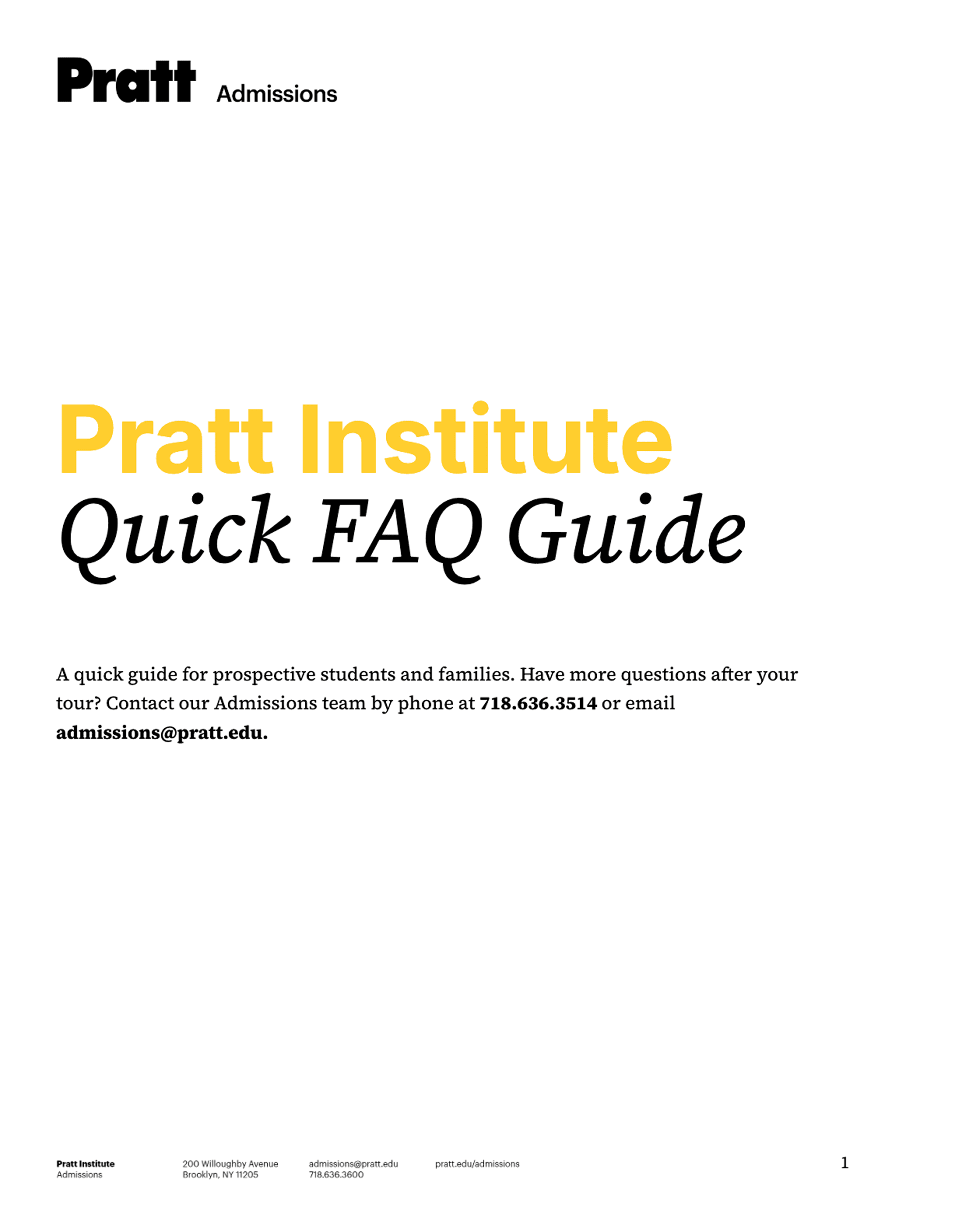 A new webpage added under the Admissions section of Pratt’s website that compiles essential visitor information with clear calls to action linking to official pages.