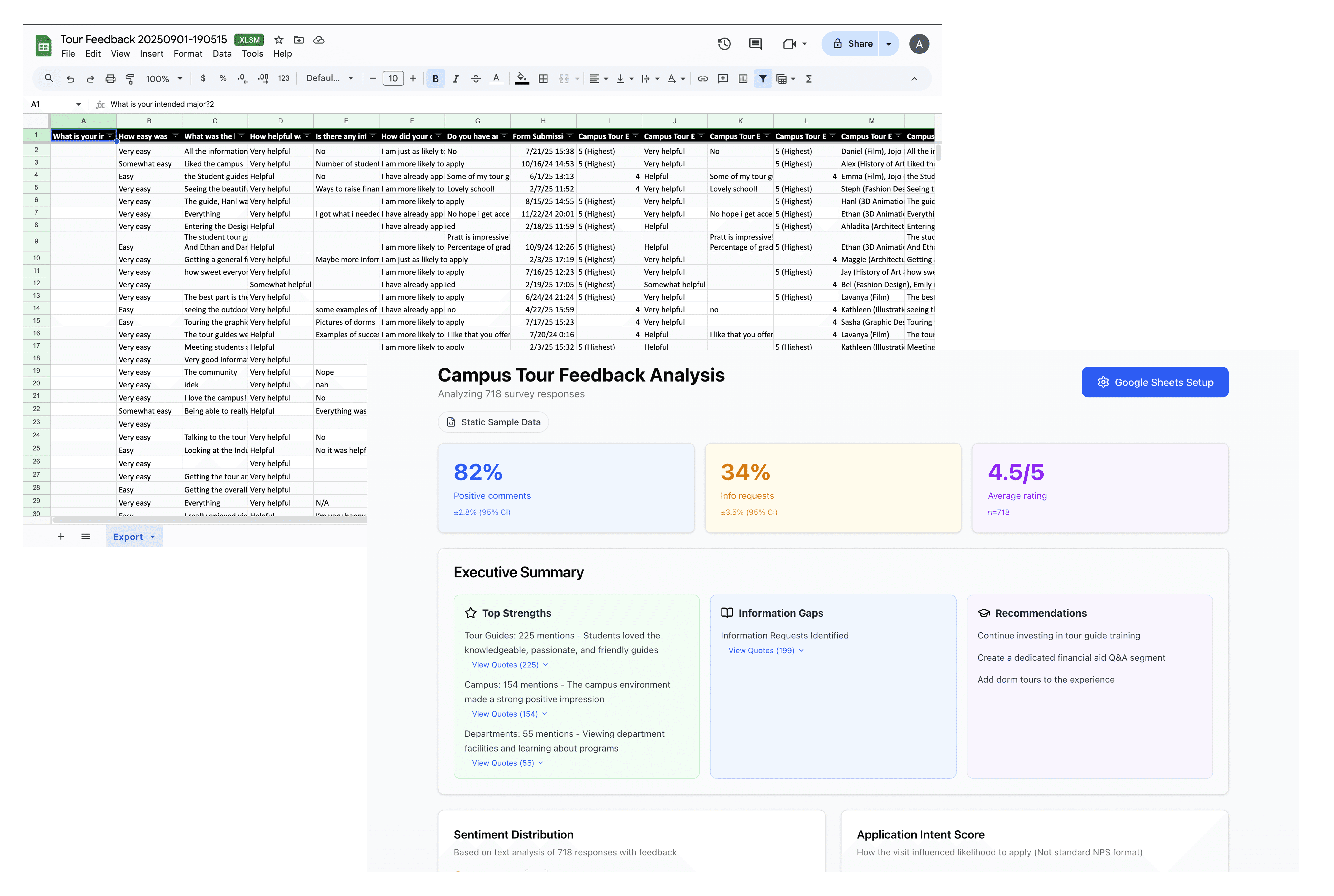 How post-tour survey data confirmed and quantified the observed pain points? We analyzed 718 tour feedback survey responses and built a dashboard to visualize the key insights.